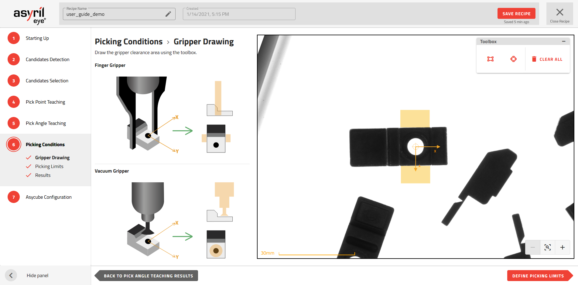 Abb. 135 Entnahmebedingungen - Zeichnen des Freiraums für einen Fingergreifer