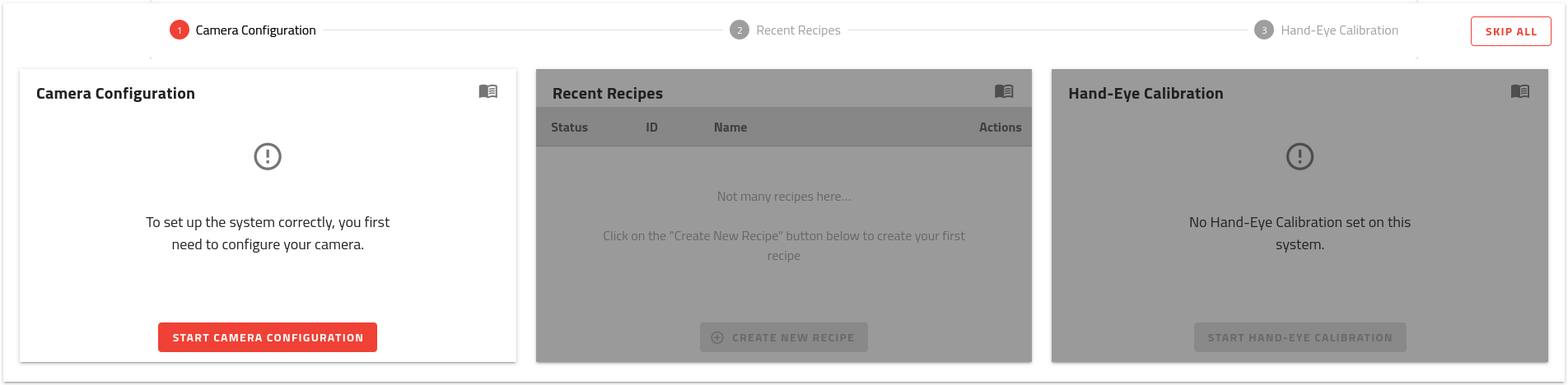 Die Kalibrierung der Kamera ist der erste Schritt im Onboarding-Tool. Klicken Sie auf der einfach auf die Schaltfläche , um den Assistenten zu öffnen.