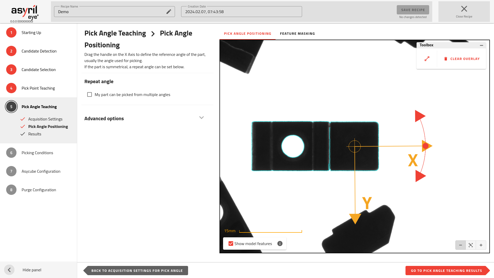 To specify the number of pick angles, you must check the box “My part can be picked from multiple angles” and enter the correct number of angles. Each angle will be represented by an arrow on the image.
