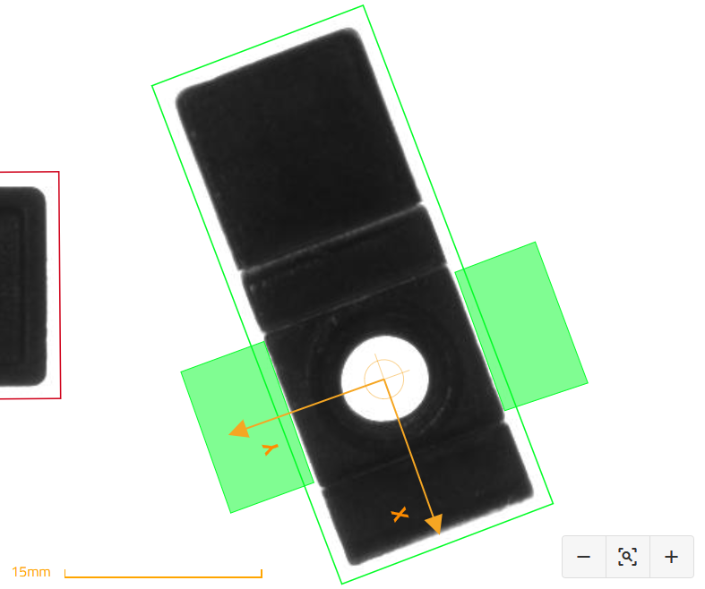 The results of this step present all the final pickable parts. Coordinates of parts in green will be sent to the robot if a get_part command is called.