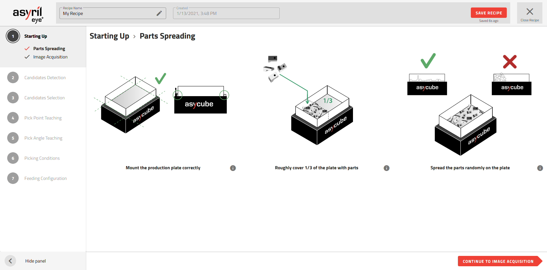 Before starting, make sure that the Asycube production plate is correctly mounted.