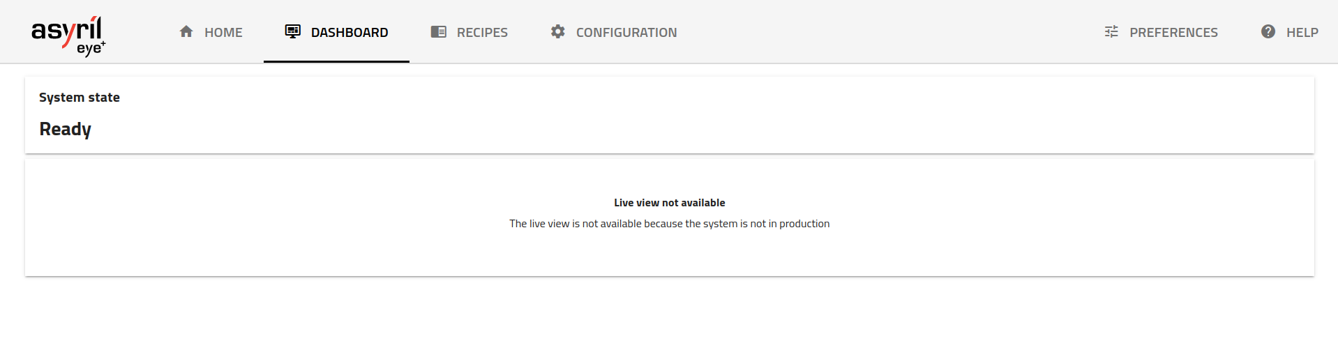 Lorsque le système n’est pas en production, le seul élément que vous voyez est l’état du système EYE+. Consultez la section États d’EYE+ pour plus de détails sur chaque état.