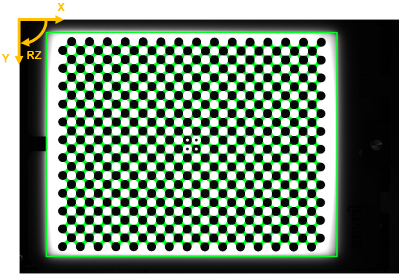 Détermination de l’échelle pixel-millimètre ou pixel-pouce : L’origine et l’orientation du système de coordonnées de la vision ne changent pas (Fig. 315). Avant la calibration de la vision, le système de coordonnées va de 0 à 3072px sur l’axe x et de 0 à 2048px sur l’axe y. Après la calibration de la vision, le système de coordonnées va de 0 à la largeur de l’image en millimètres/pouces et de 0 à la hauteur de l’image en millimètres/pouces (Tableau 29).