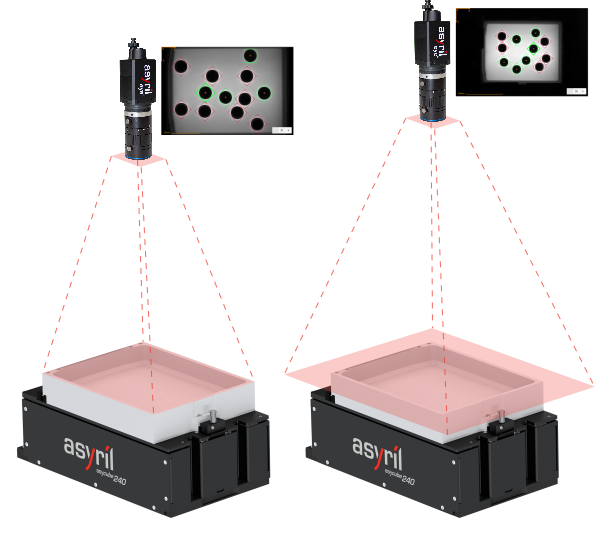 EYE+ Studio 5.1.0 以降、 EYE+ は同じアジキューブモデルを使用した異なるセットアップ間でのレシピのポータビリティをサポートしています。例えば、Asycube 240 を使用してコントローラ( ベースシステム )で作成したレシピをエクスポートし、同じく Asycube 240 を使用してコントローラ( ターゲットシステム )にインポートすることができます。アジキューブとの相対的なカメラ位置の違い(動作距離とセンタリング)は自動的に考慮され、視覚的に同レベルのパフォーマンスが保証されます。